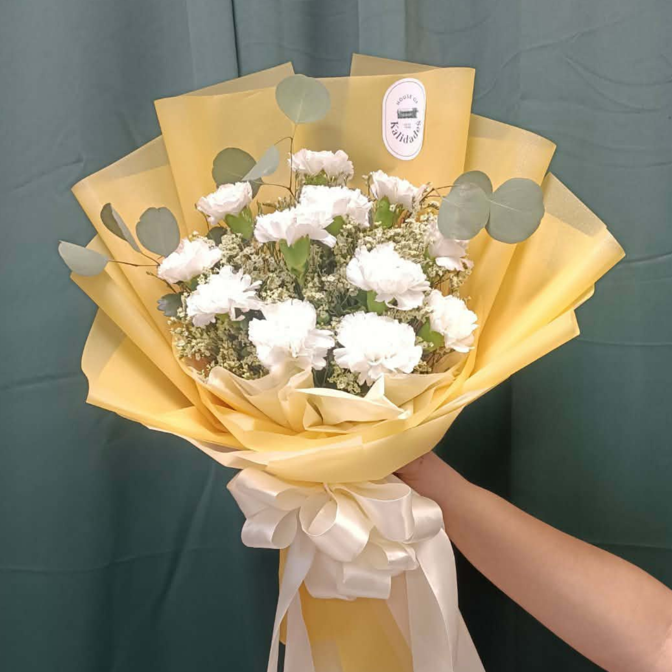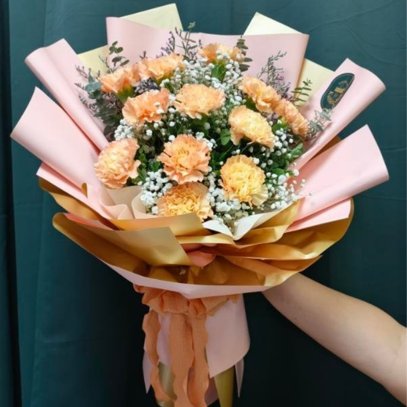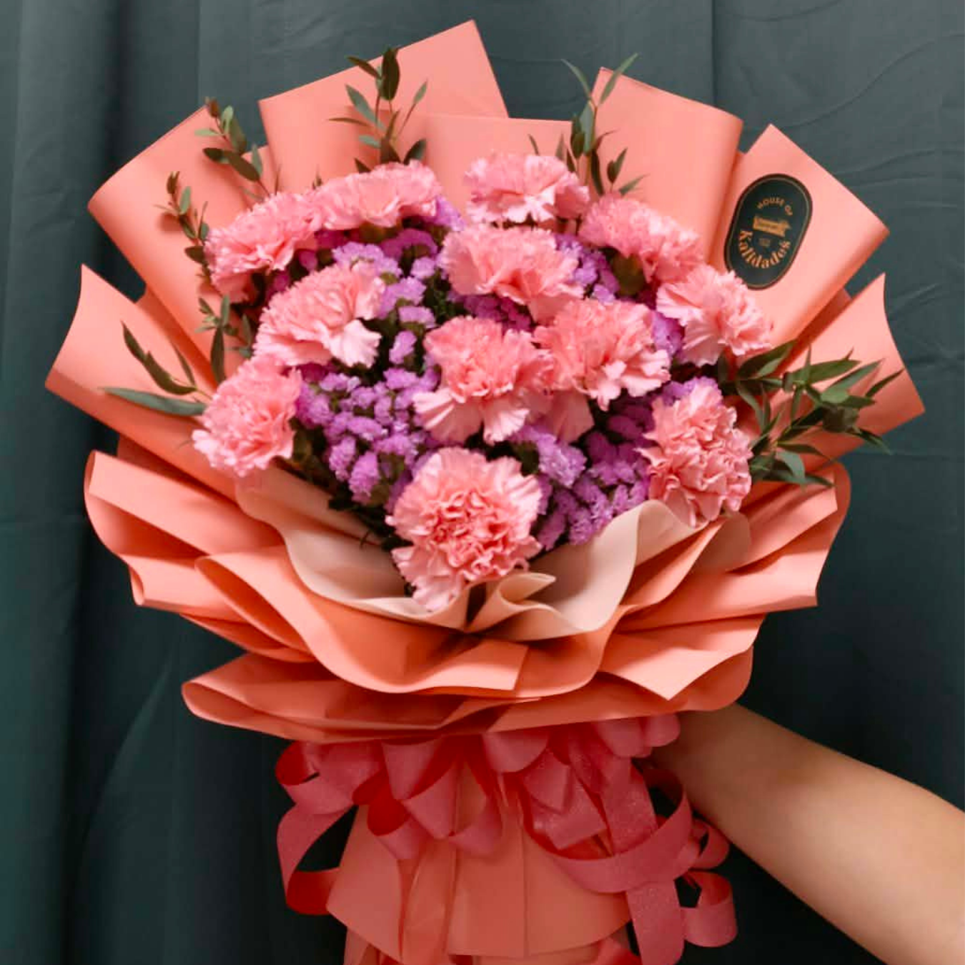 Bright, charming, and full of life, this 1-dozen carnation bouquet is designed to bring joy to any occasion. With a mix of colors and carefully arranged blooms, it’s a wonderful choice for gifting, decorating, or simply making someone smile.